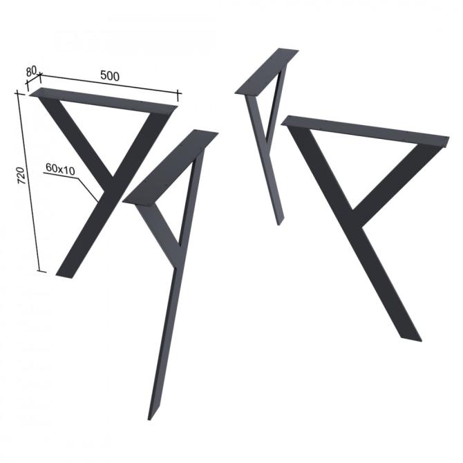 Ніжка зроблена з металевої труби профілем 60*15 мм. Вгорі опори приварена широка металева пластина товщиною 3 мм, яка збільшує площу дотику ніжок зі стільницею для збільшення стійкості конструкції.