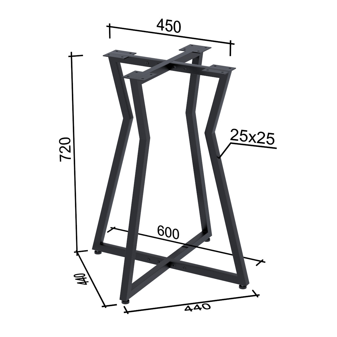 Опора виготовляється із квадратної труби профілем 25х25 мм. Каркас має незвичайну конусоподібну форму діаметром 600 мм внизу, забезпечуючи стійкість столу.