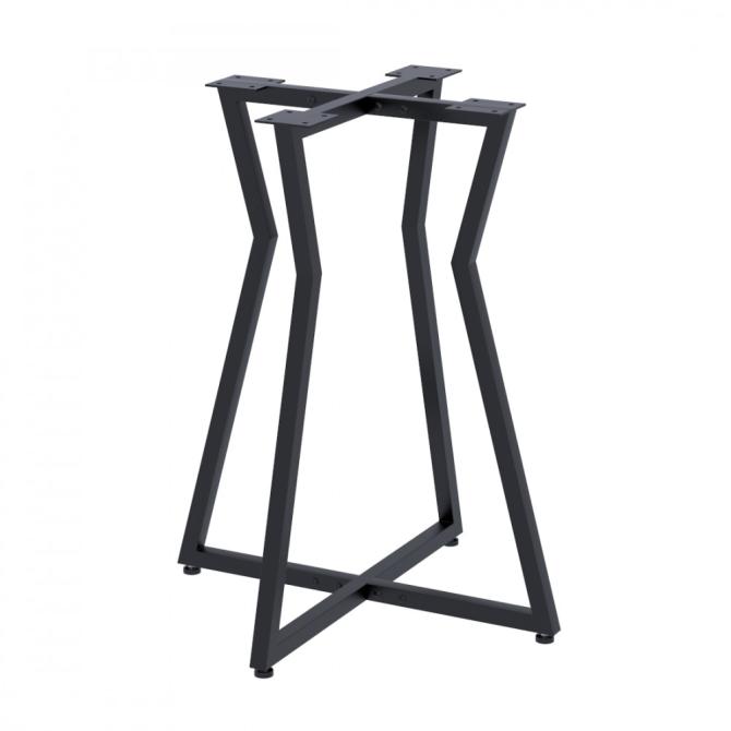 Опора пофарбована в чорний колір RAL 9011 порошковою фарбою, стійкою до стирання. Вона оснащена регульованими ніжками на шарнірі, завдяки чому стіл можна виставити на нерівній підлозі.