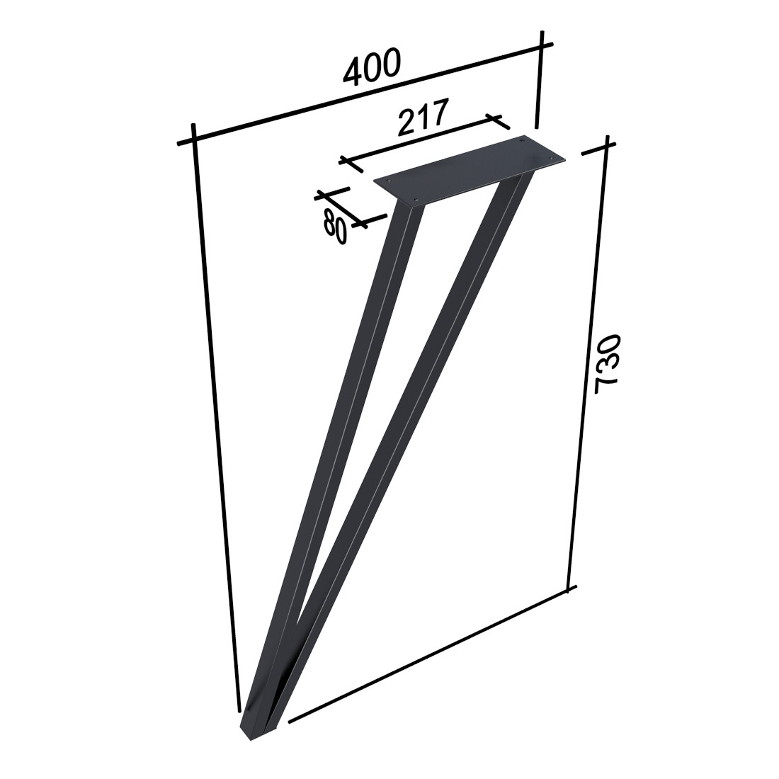 Ніжка кріпиться до стільниці на саморізи по дереву. Опора забарвлена в чорний колір RAL 9011 порошковою фарбою, стійкою до стирання.