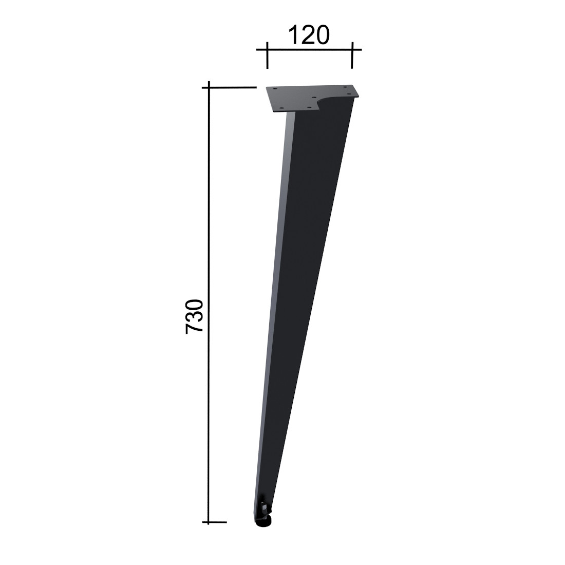 Внизу є регульовані ніжки з шарніром, що дозволяють виставити стіл на нерівній підлозі. Ніжки пофарбовані в чорний напівматовий колір за технологією порошкового фарбування та запікання у печі.