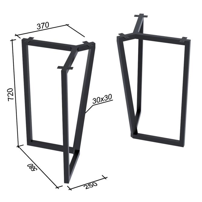 Вона має невеликі пластини згори, з готовими отворами для надійного кріплення стільниці. Опори пофарбовані за допомогою порошкового фарбування, яке стійке до зовнішніх впливів.