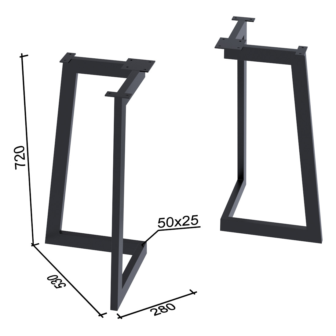 Опора столу виготовляються із металевої труби профілем 50х25 мм. Вона має невеликі пластини згори, з готовими отворами для надійного кріплення стільниці.