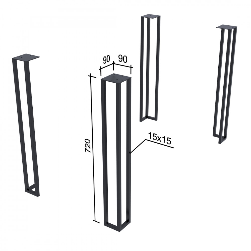 Ніжка зроблена з металевої труби профілем 15*15 мм. Вгорі опори приварена широка металева пластина товщиною 3 мм, яка збільшує площу дотику ніжок зі стільницею для збільшення стійкості конструкції.