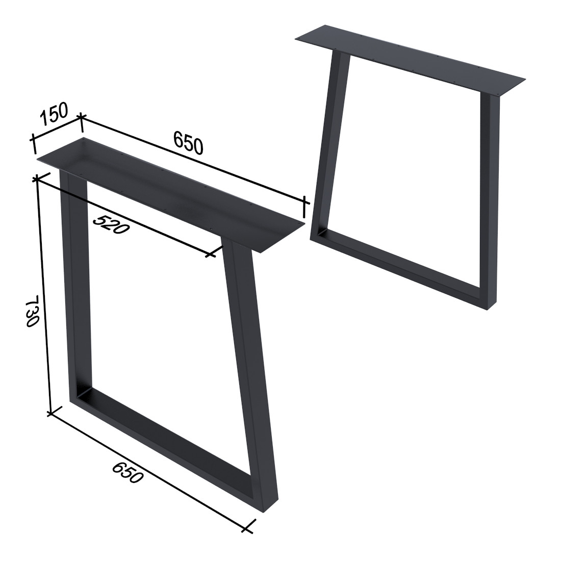 Ніжка зроблена з металевої труби профілем 60*30 мм. Вгорі опори приварена широка металева пластина товщиною 3 мм, яка збільшує площу дотику ніжки зі стільницею для збільшення стійкості конструкції.