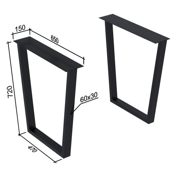 Ніжка зроблена з металевої труби профілем 60*30 мм. Вгорі опори приварена широка металева пластина товщиною 3 мм, яка збільшує площу дотику ніжки зі стільницею для збільшення стійкості конструкції.