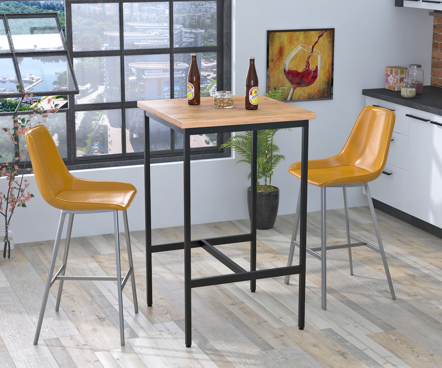 Барний стіл Бруно має невеликі розміри, які розраховані на двох людей. Це місце для перерви на обід або філіжанку кави.
