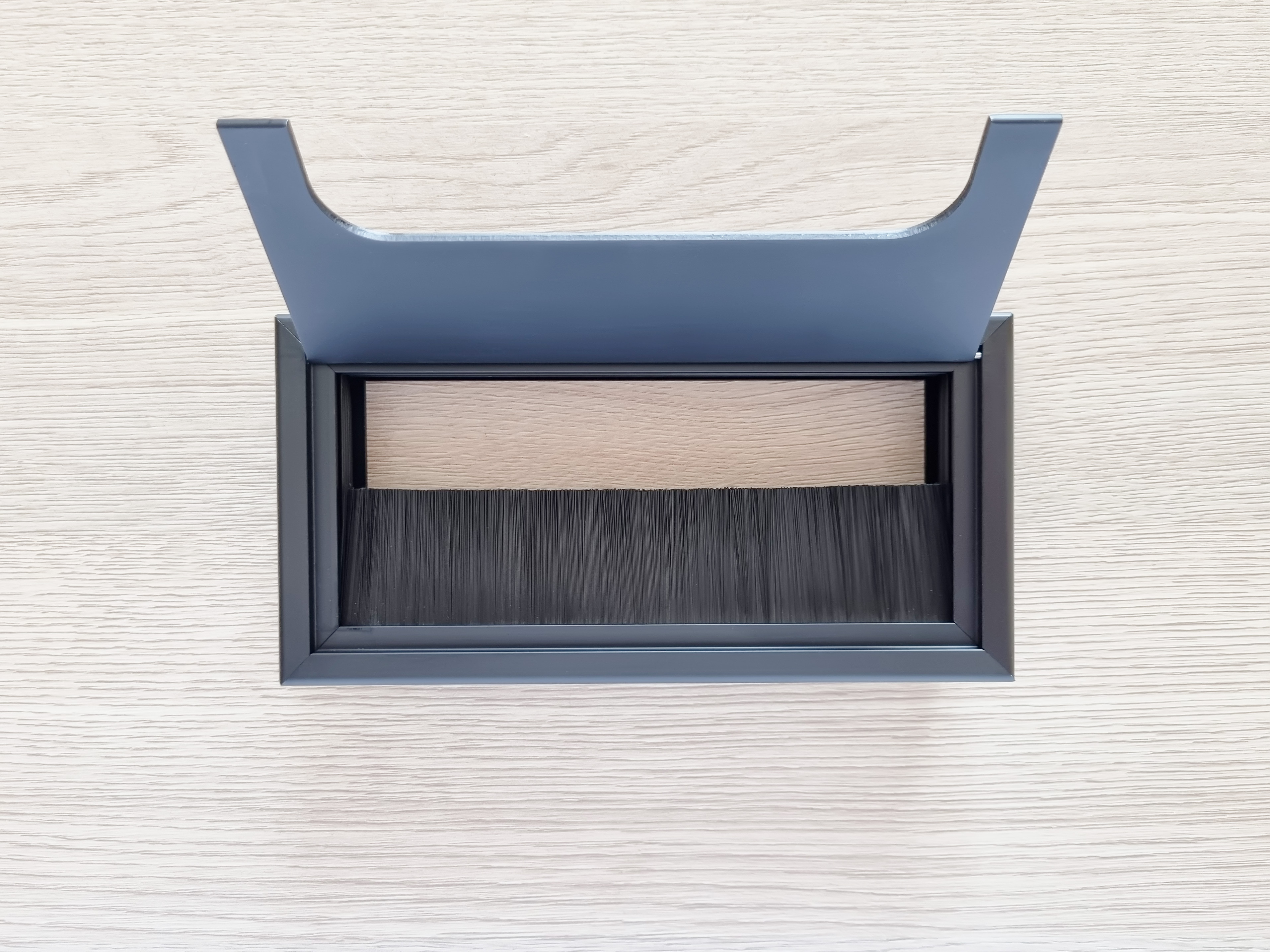 Заглушка для кабелю 160×80 мм від компанії Loft Design дозволяє заховати безліч проводів з робочого столу. Вона підходить як для письмового столу, так і для столу для переговорів. Щоб кабелі від оргтехніки не звисали з краю столу в безладному вигляді або вам потрібно поставити впритул два столи, встановіть заглушку в місці найбільшого скупчення проводів і спустіть їх під стіл.