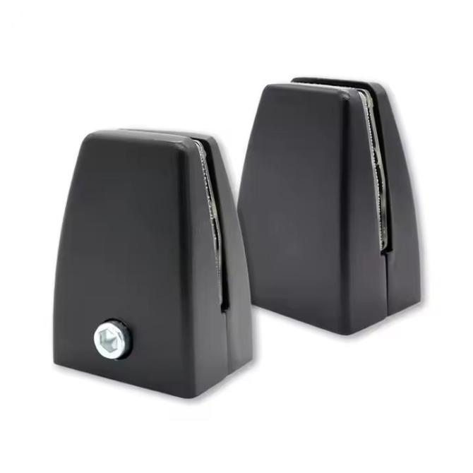 Кріплення виготовлено з алюмінію в заводських умовах і виглядає солідно на відміну від саморобних куточків. В якості перегородки може виступати різний матеріал: акрил, скло, фанера, ДСП або спеціальний звукопоглинаючий екран. Товщина матеріалу повинна бути 3-18 мм. Затискання здійснюється за допомогою гвинта з головкою під шестигранний ключ. Гвинт і ключ входять в комплект. Тримачі також комплектуються силіконовими накладками для захисту екрану від пошкодження при затисканні.