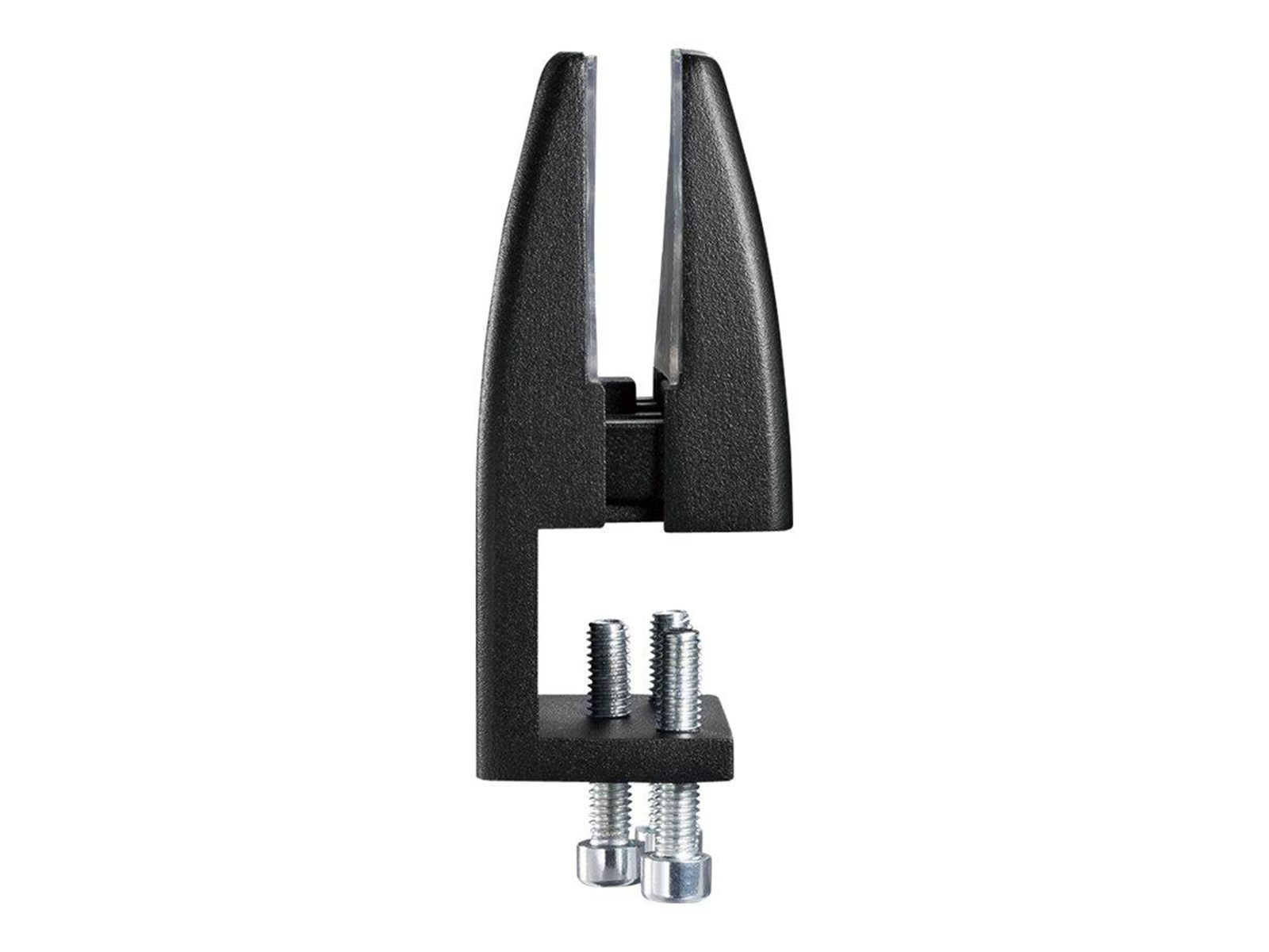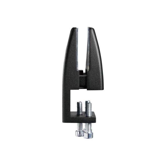 Тримач-кріплення №2 чорний підходить для кріплення перегородки між двома столами або для одного столу, щоб сховатися екраном від відвідувачів. Ця модель тримача екрану для столу підходить для столу, у якого є виліт стільниці ззаду на 25 мм. Товщина стільниці не повинна перевищувати 26 мм. Кріплення надійно кріпиться за край стільниці за допомогою гвинтів, має привабливий вигляд, підходить для багаторазового використання.
