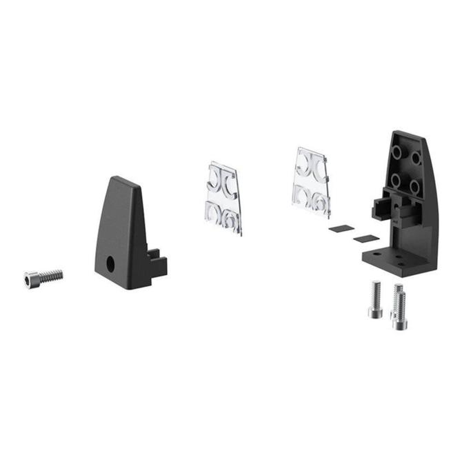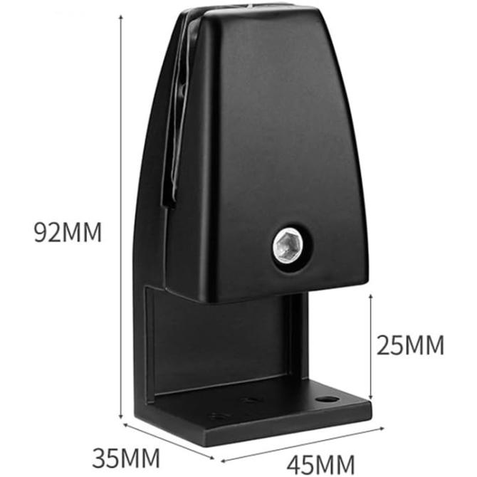 Кріплення виготовлено з алюмінію в заводських умовах і виглядає солідно на відміну від саморобних куточків. В якості перегородки може виступати різний матеріал: акрил, скло, фанера, ДСП або спеціальний звукопоглинаючий екран. Товщина матеріалу повинна бути 3-18 мм. Затискання здійснюється за допомогою гвинта з головкою під шестигранний ключ. Гвинт і ключ входять в комплект. Тримачі також комплектуються силіконовими накладками для захисту екрану від пошкодження при затисканні.