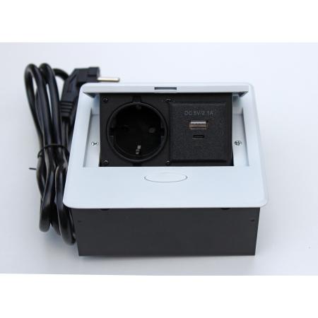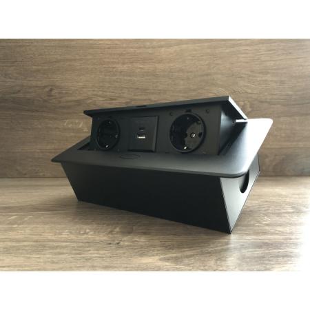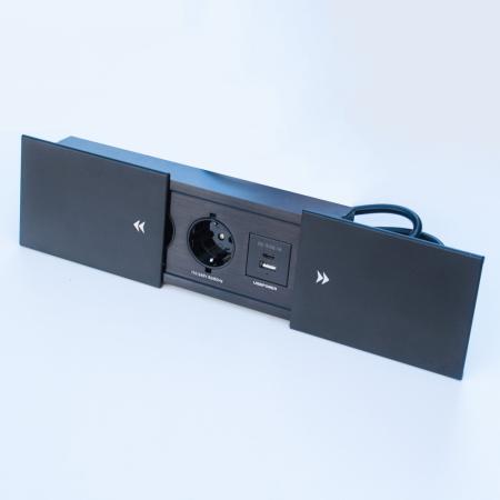 - Вбудовані настільні розетки — акуратно монтуються в стільницю.