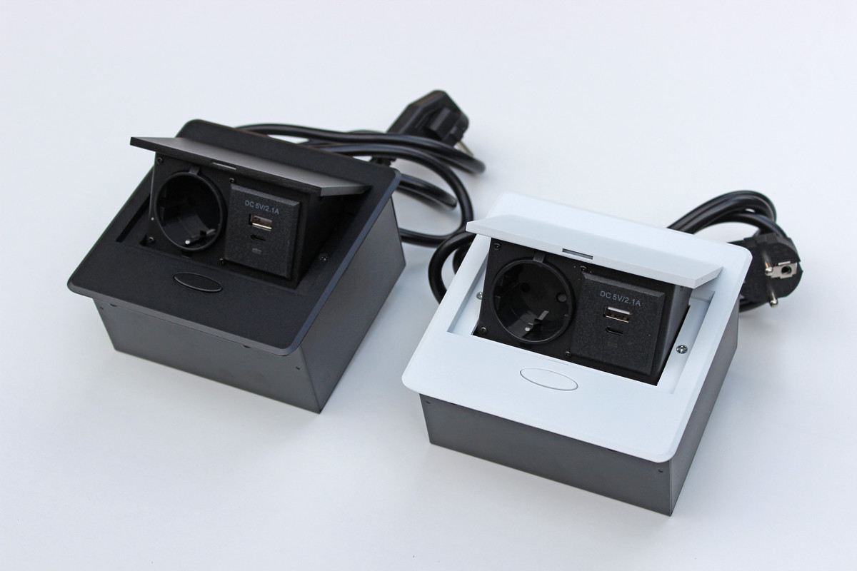Удлинитель розетки 1R+USB+Type-C белый предназначен для столов для переговоров, обычных офисных столов и других поверхностей, где необходимо вывести розетку и зарядку телефона. Блок открывается нажатием кнопки, после чего розетка плавно открывается. Это отличное решение для письменного стола, стола для переговоров или кухни.