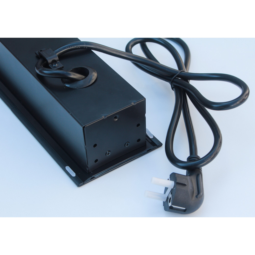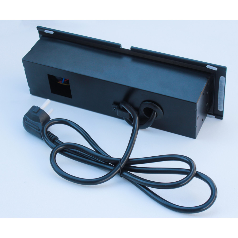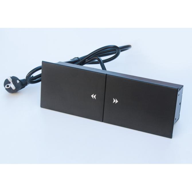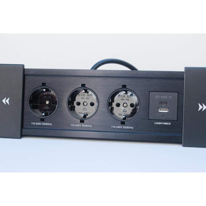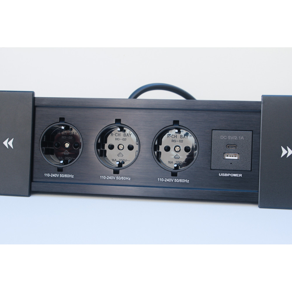 Настільна розетка 280x100 двостороння чорна призначена для столів для переговорів і звичайних офісних столів. Вона дозволяє вивести на стіл роз'єми розетки і порти USB і Type - C для заряджання ваших гаджетів. Настільна розетка оснащена засувками, які розкриваються в дві сторони, якщо потрібний доступ до роз'ємів.