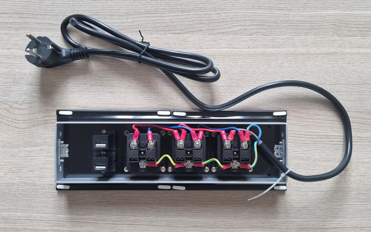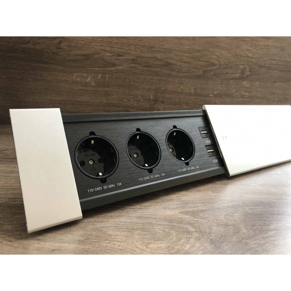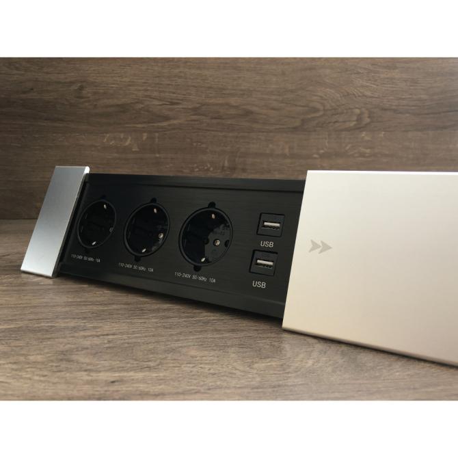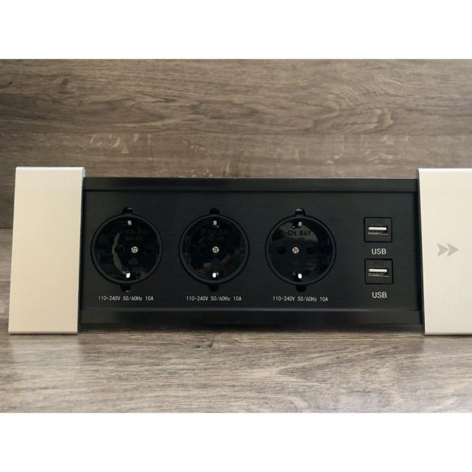 Вона дозволяє вивести на стіл роз'єми розетки та порти USB для підкочування флешки або підзарядки ваших гаджетів. Для підключення портів USB потрібні шнури для підключення до комп'ютера або зарядного пристрою. Розетка оснащена потужним трижильним кабелем довжиною 1,33 метра з вилкою.