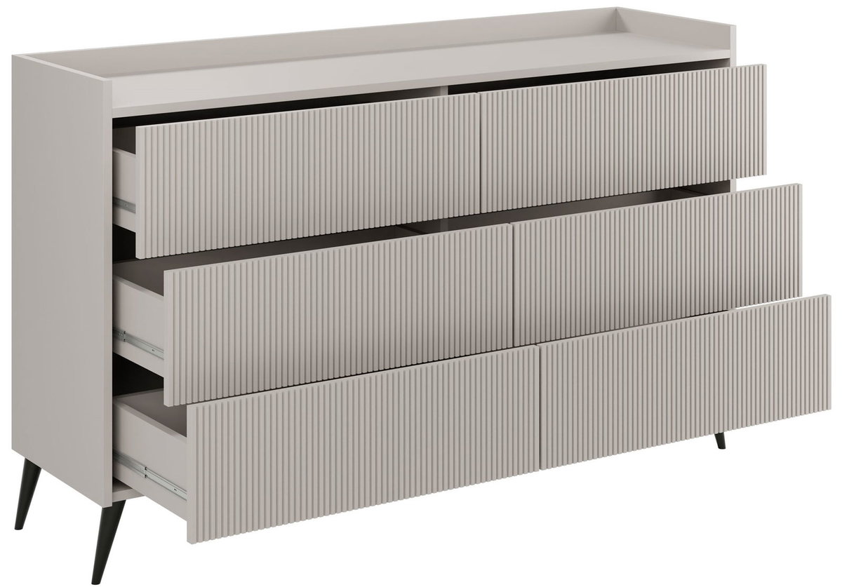 Колір: кашемір/кашемір. Додаткова інформація: корпус – ЛДСП 16 мм, кромка PCV, фасади – МДФ 18 мм, металеві ніжки Н-15 см, напрямні – кулькові повного висування H-35 GTV, механізм відкривання легким дотиком (система TIP-ON). Розміри коробок: 9,1 * 41,5 * 168 см + 17,5 * 38 * 79,5 см