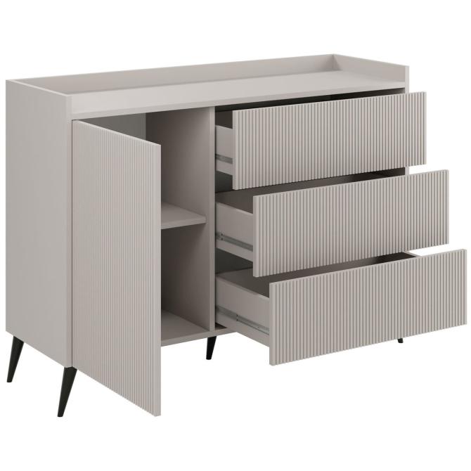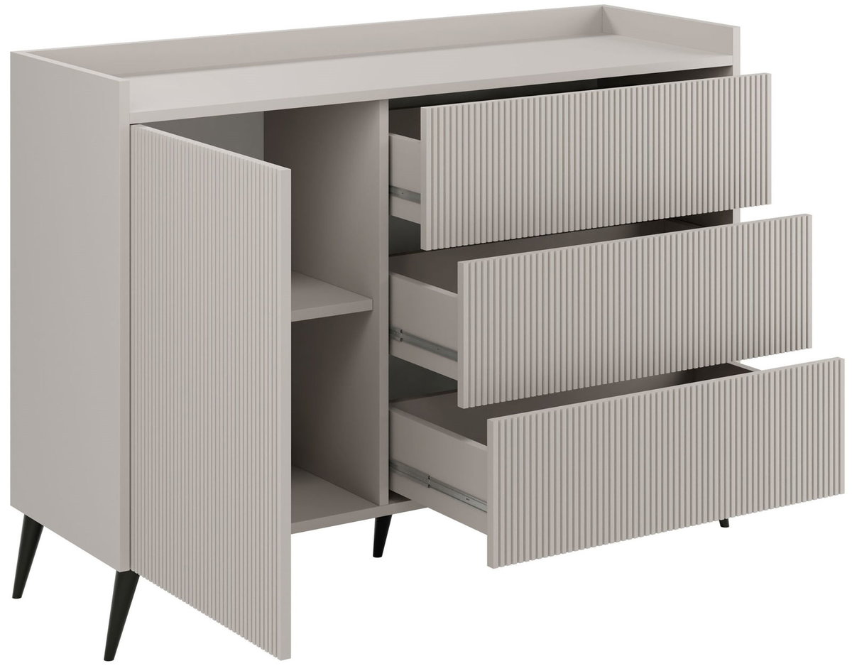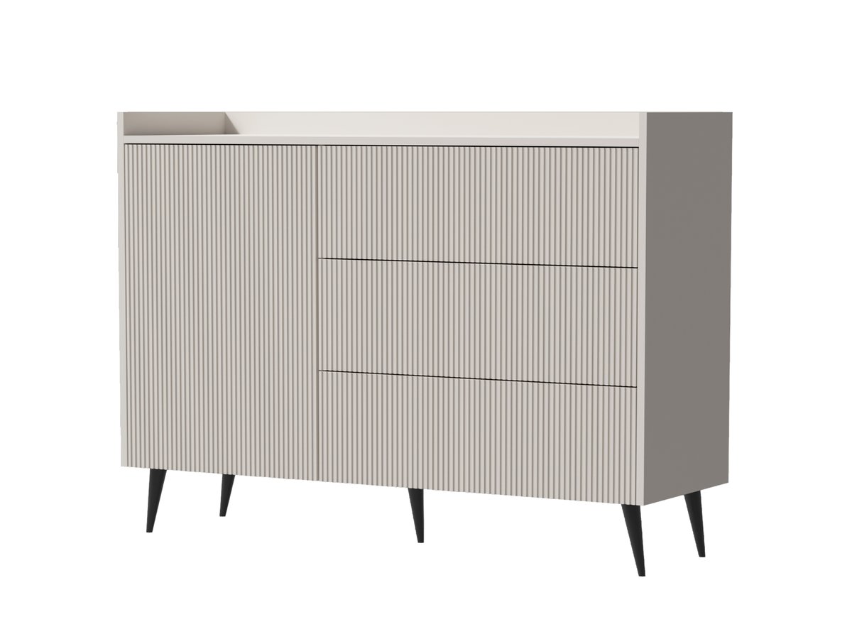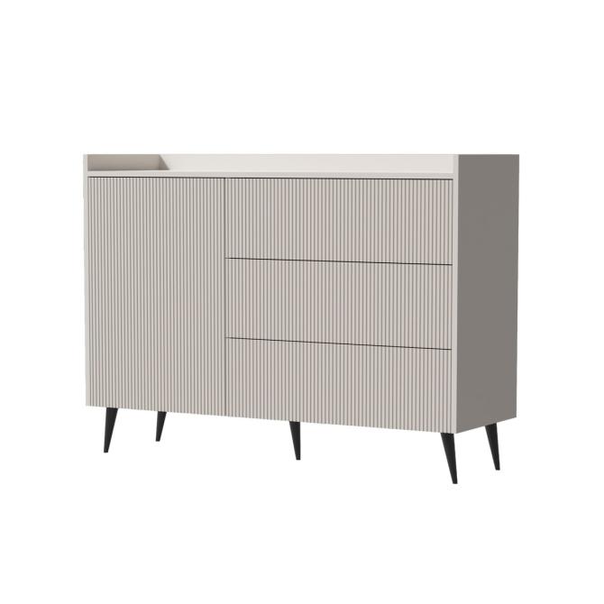 Колір: кашемір/кашемір. Додаткова інформація: корпус - ЛДСП 16 мм, кромка PCV, фасади - МДФ 18 мм, металеві ніжки Н-15 см, напрямні - кулькові повного висування H-35 GTV, механізм відкривання легень прик. Розміри коробок: 10*41,5*129 см + 8,7*50*89,5 см