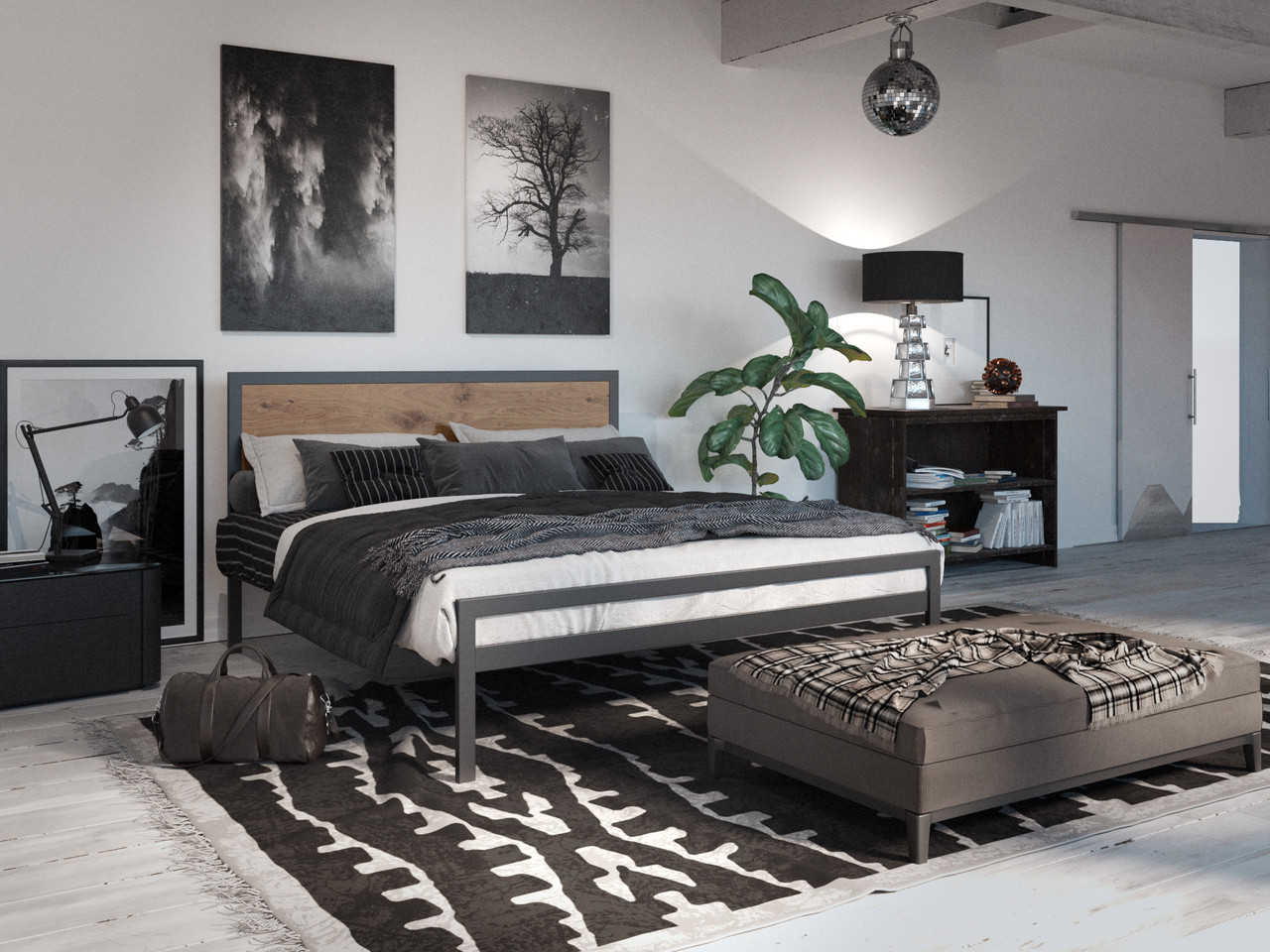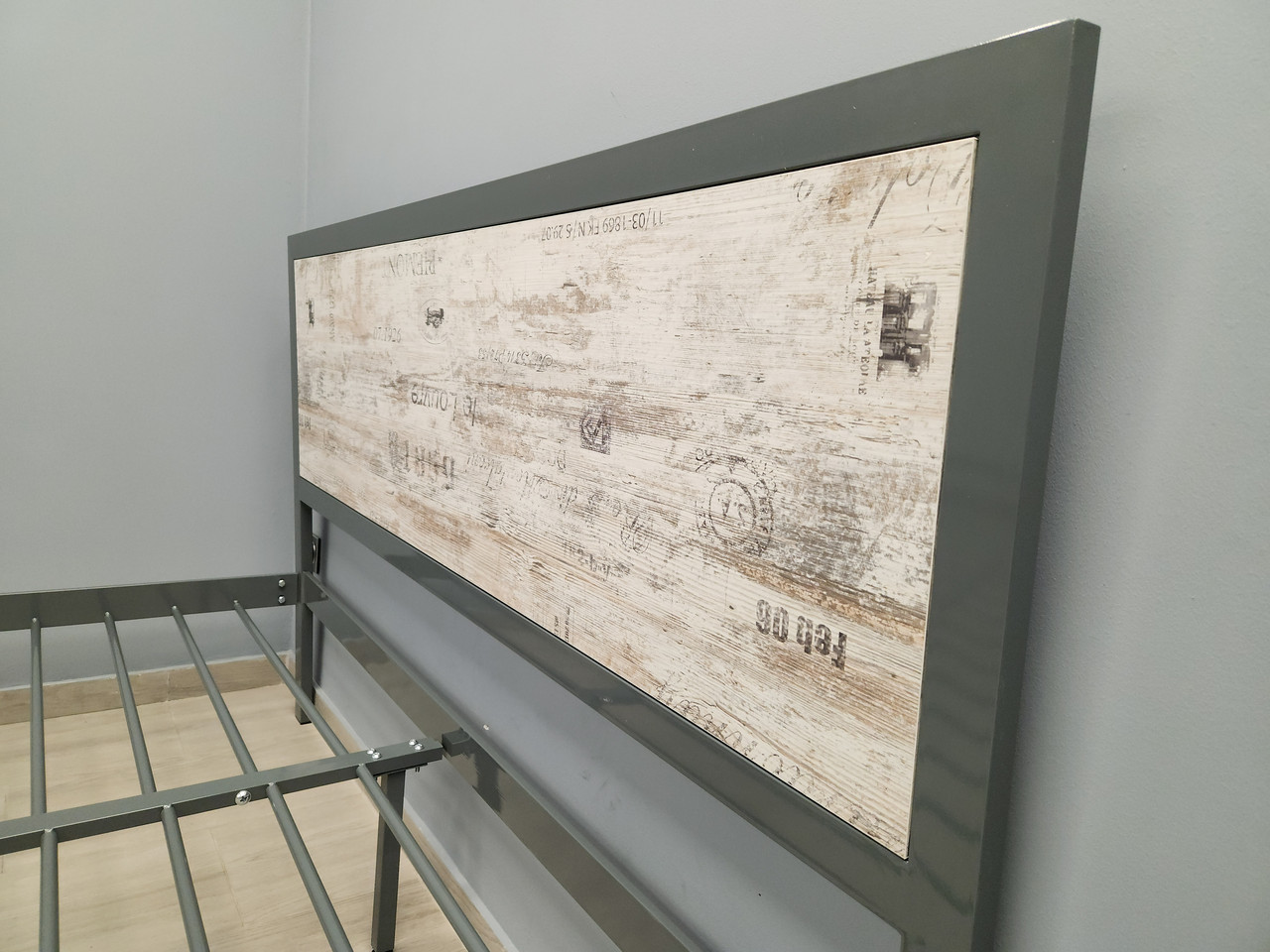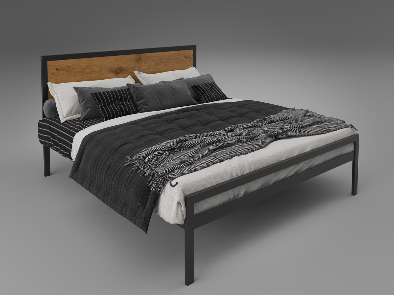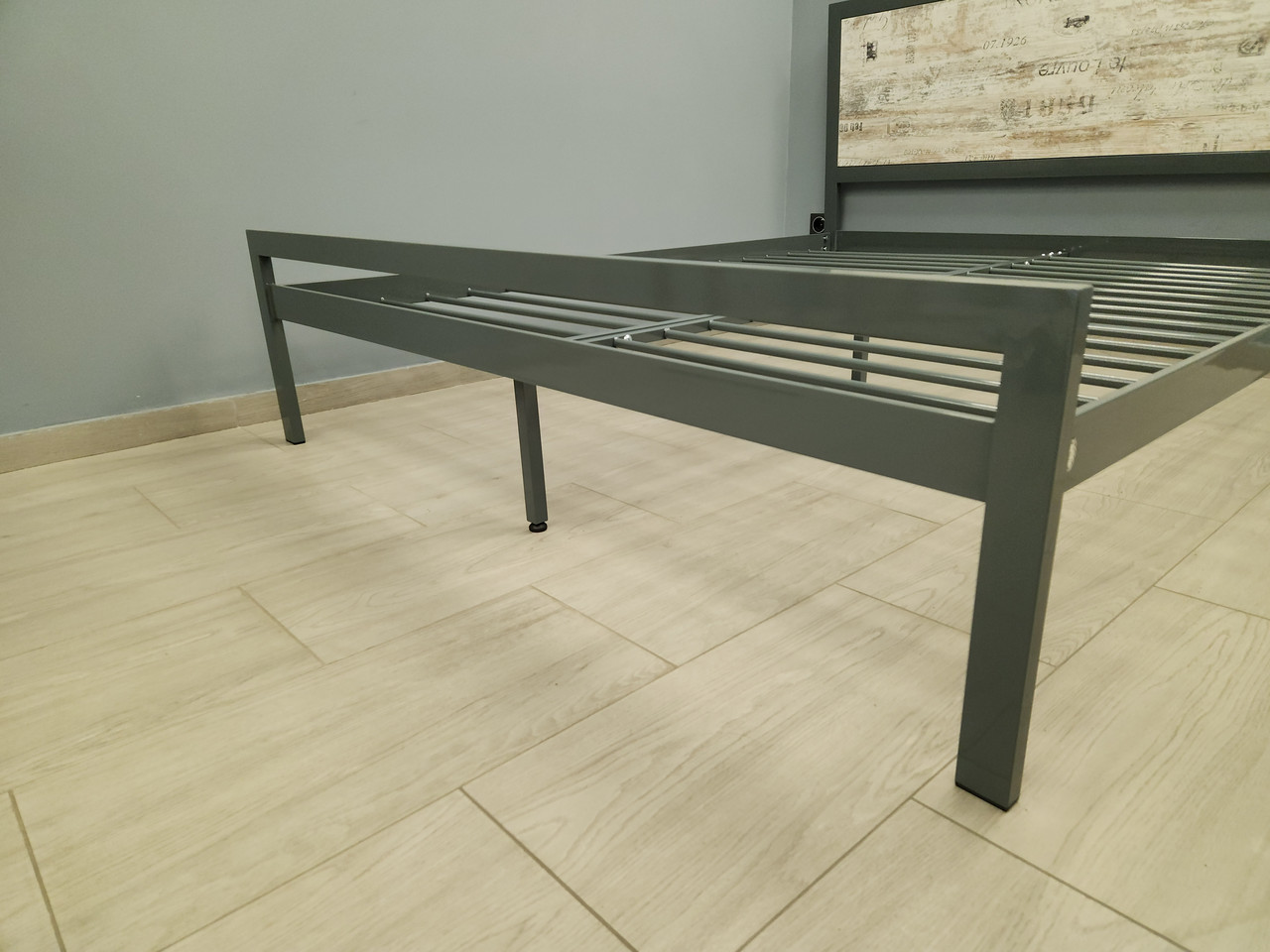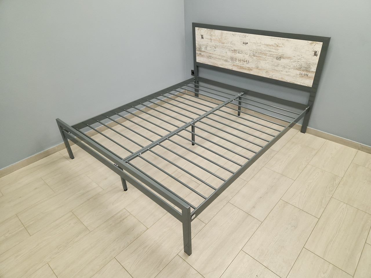 Двоспальне металеве ліжко в стилі Лофт з ДСП плитою в узолів'ї.