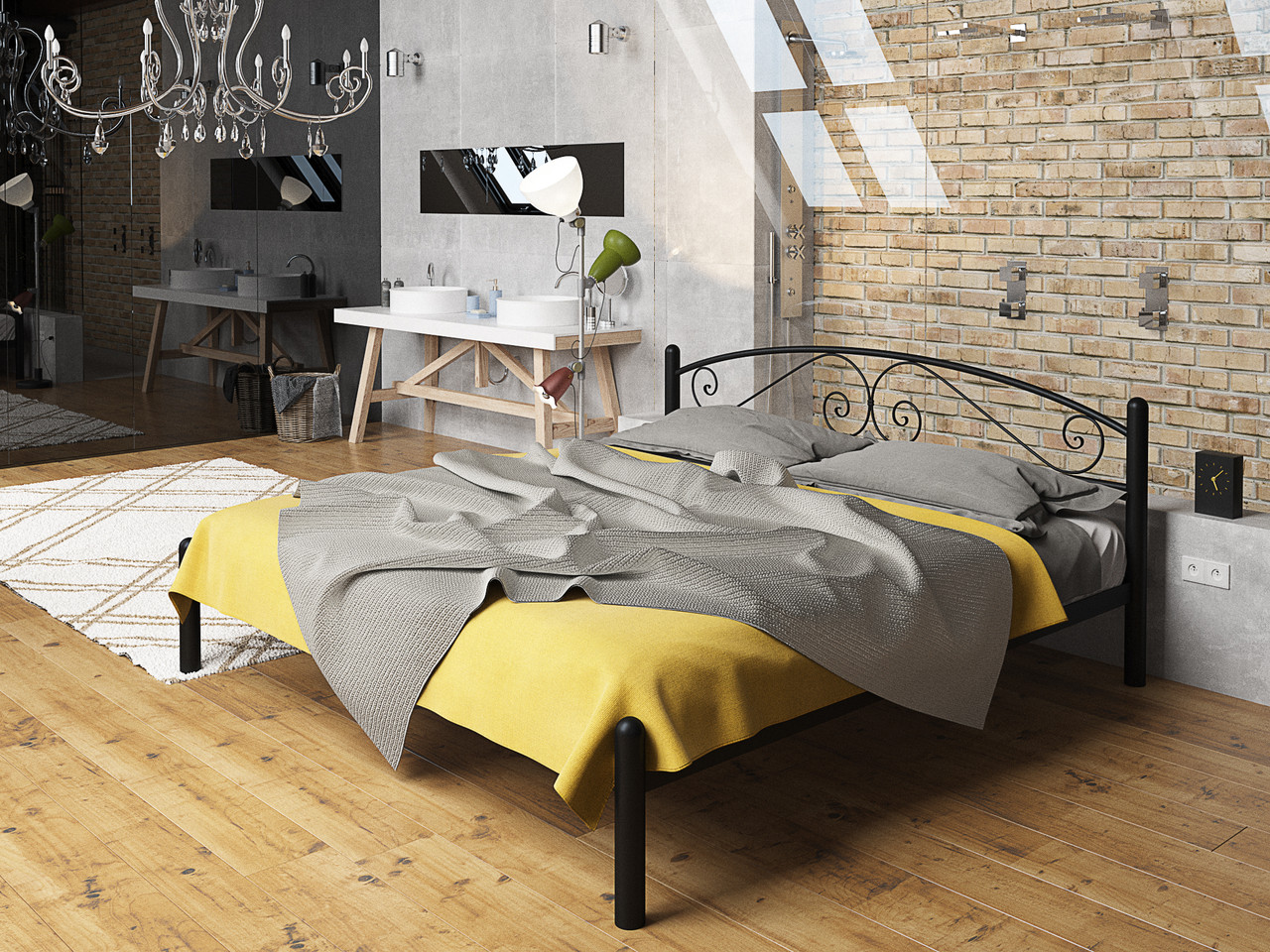 Двоспальне металеве ліжко в стилі Мінімалізм