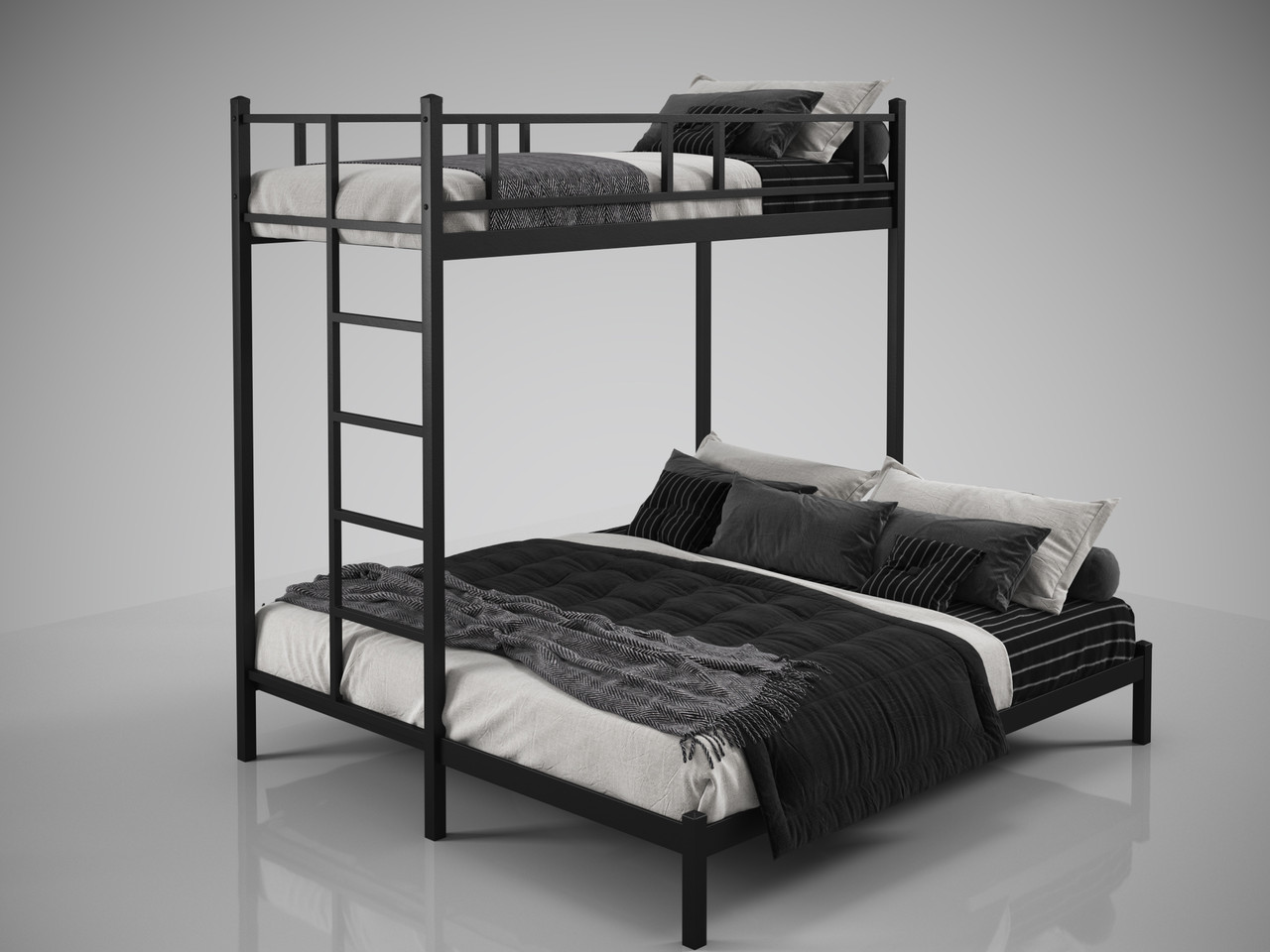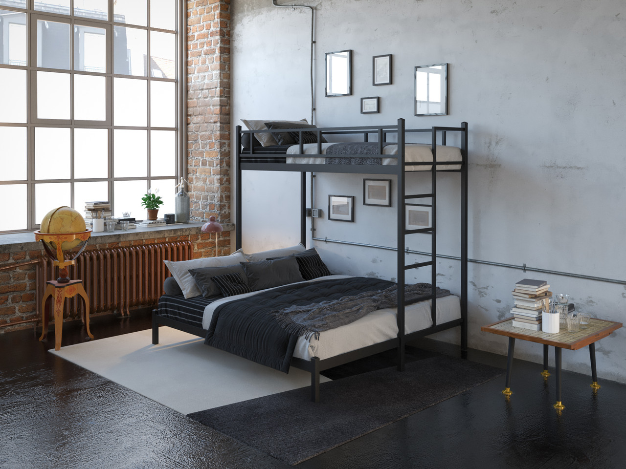 Двоярусне трьохспальне металеве ліжко в стилі Лофт.