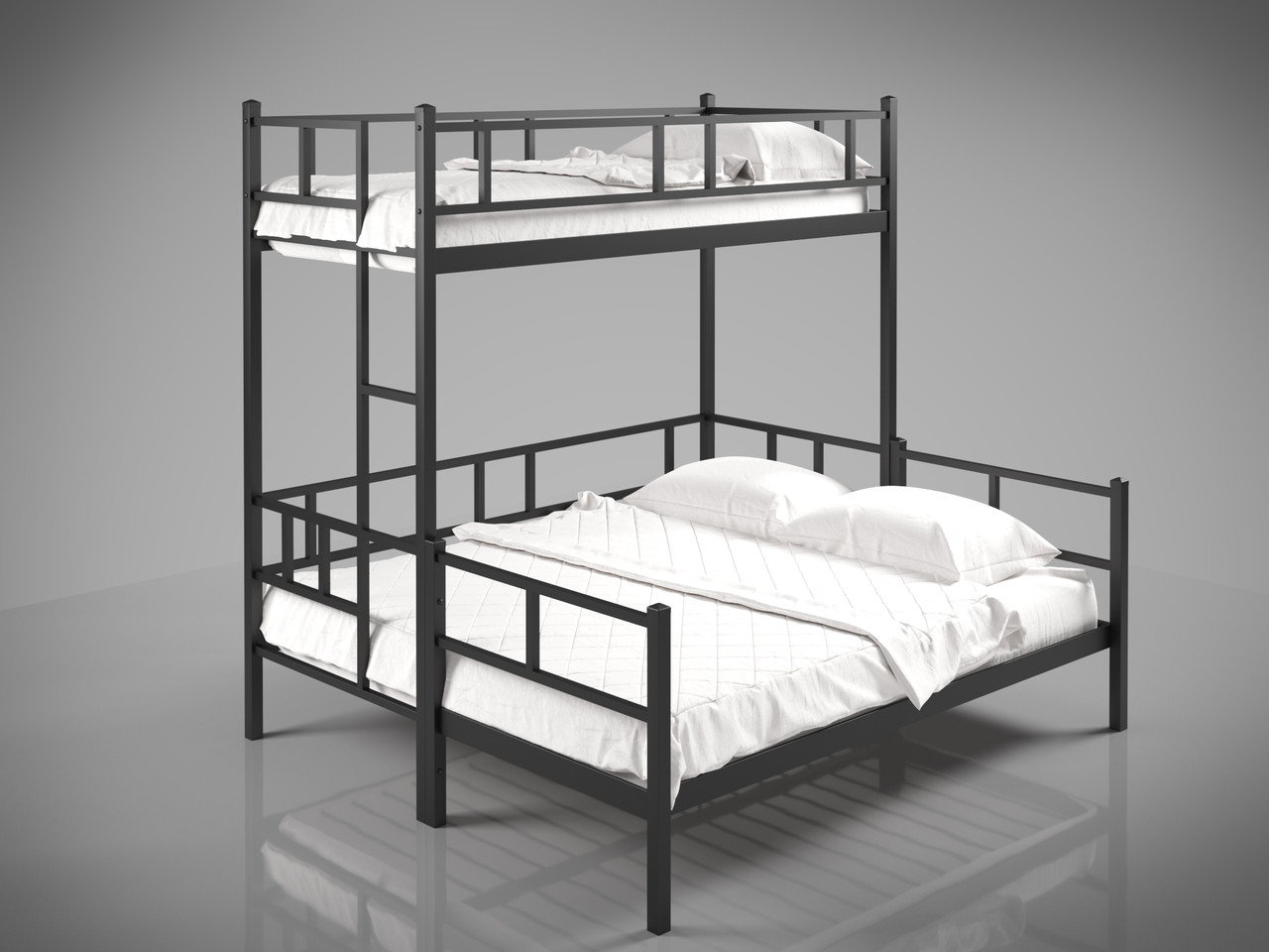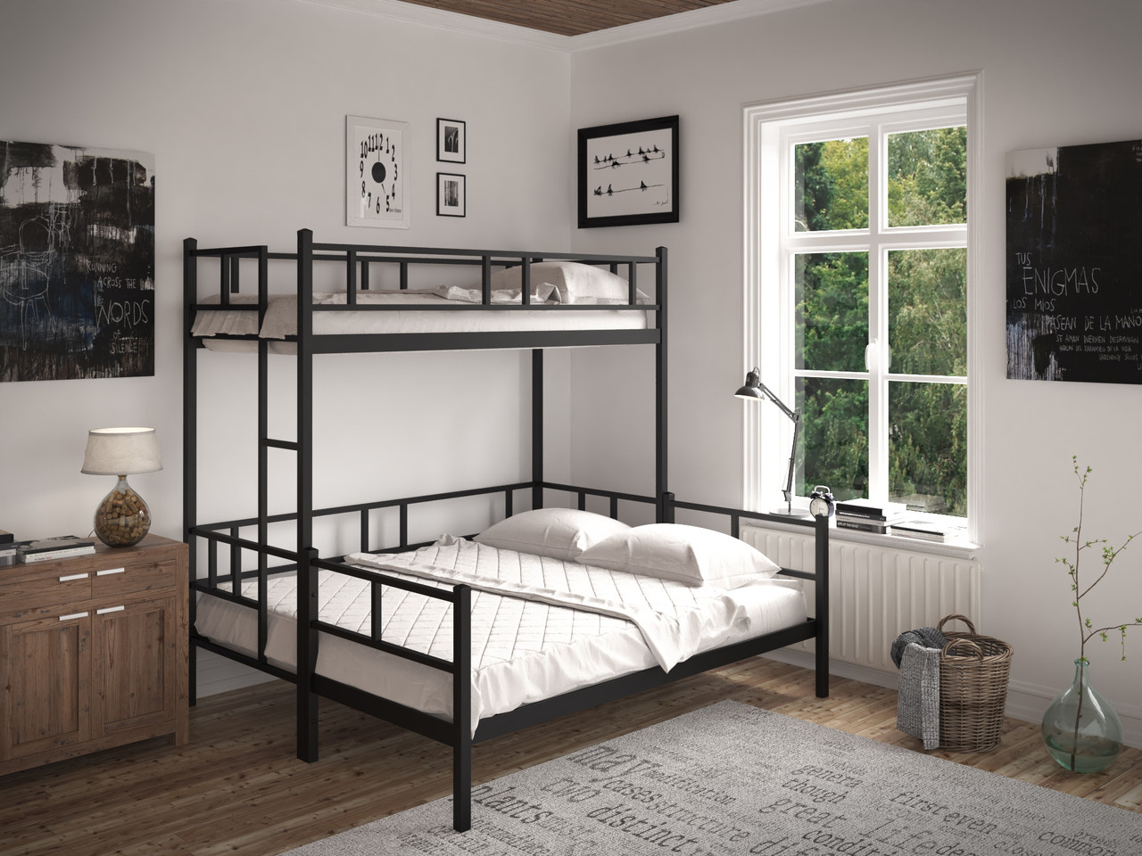 Двоярусне трьохспальне металеве ліжко в стилі Лофт.