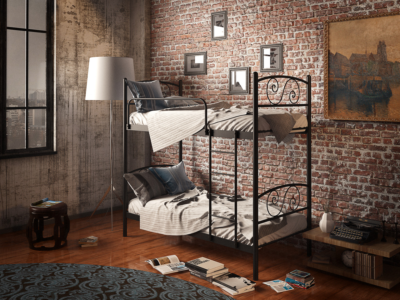 Двоярусне металеве ліжко в класичному стилі.