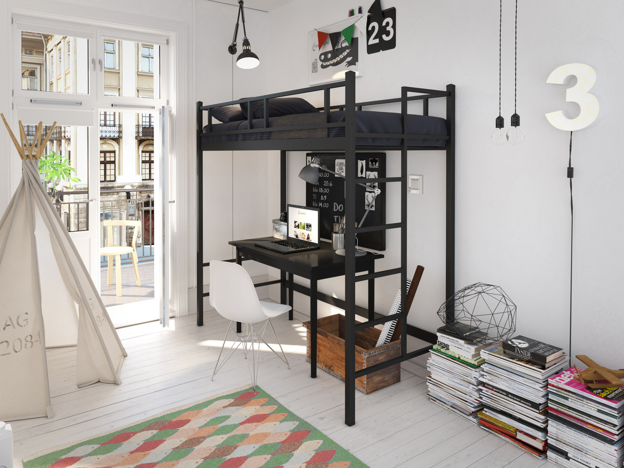 Двоярусне ліжко-горище в стилі Лофт.