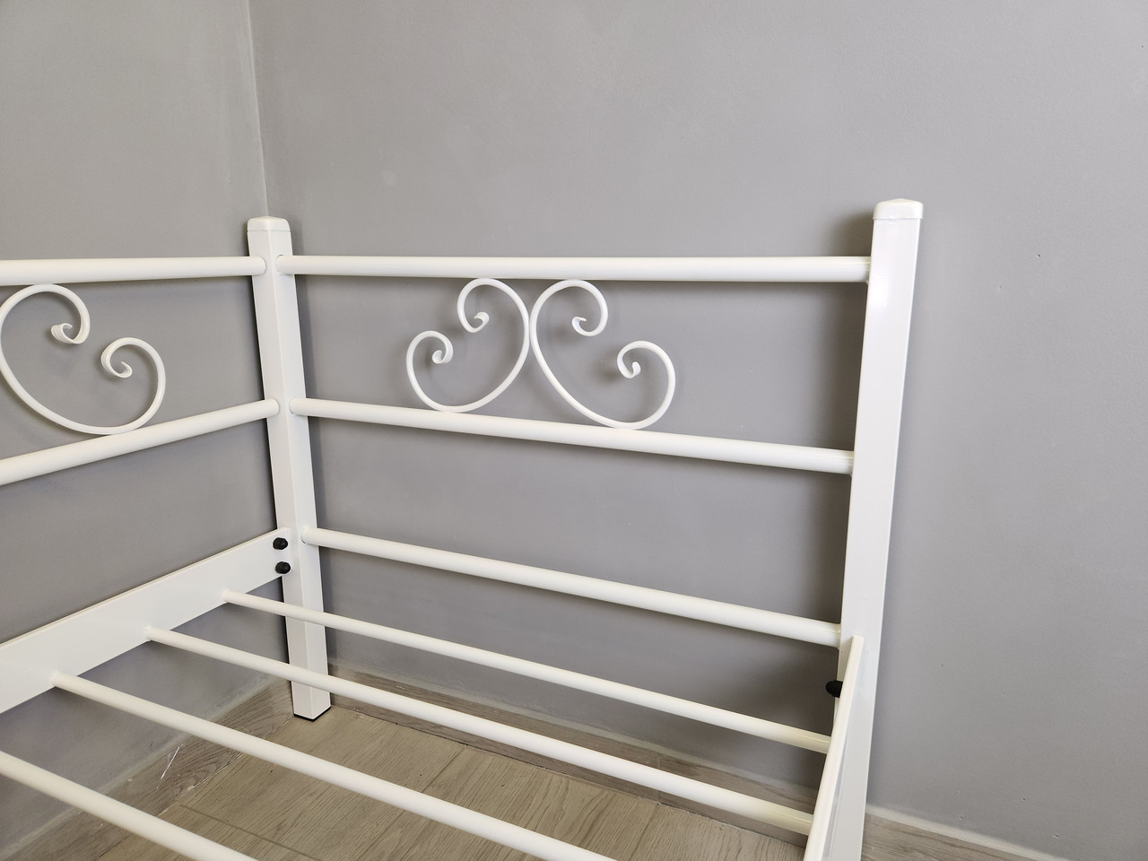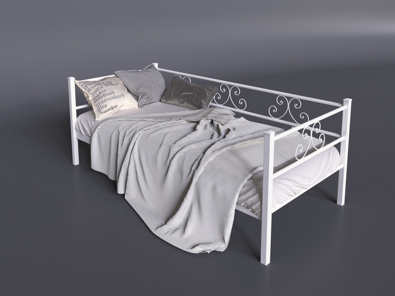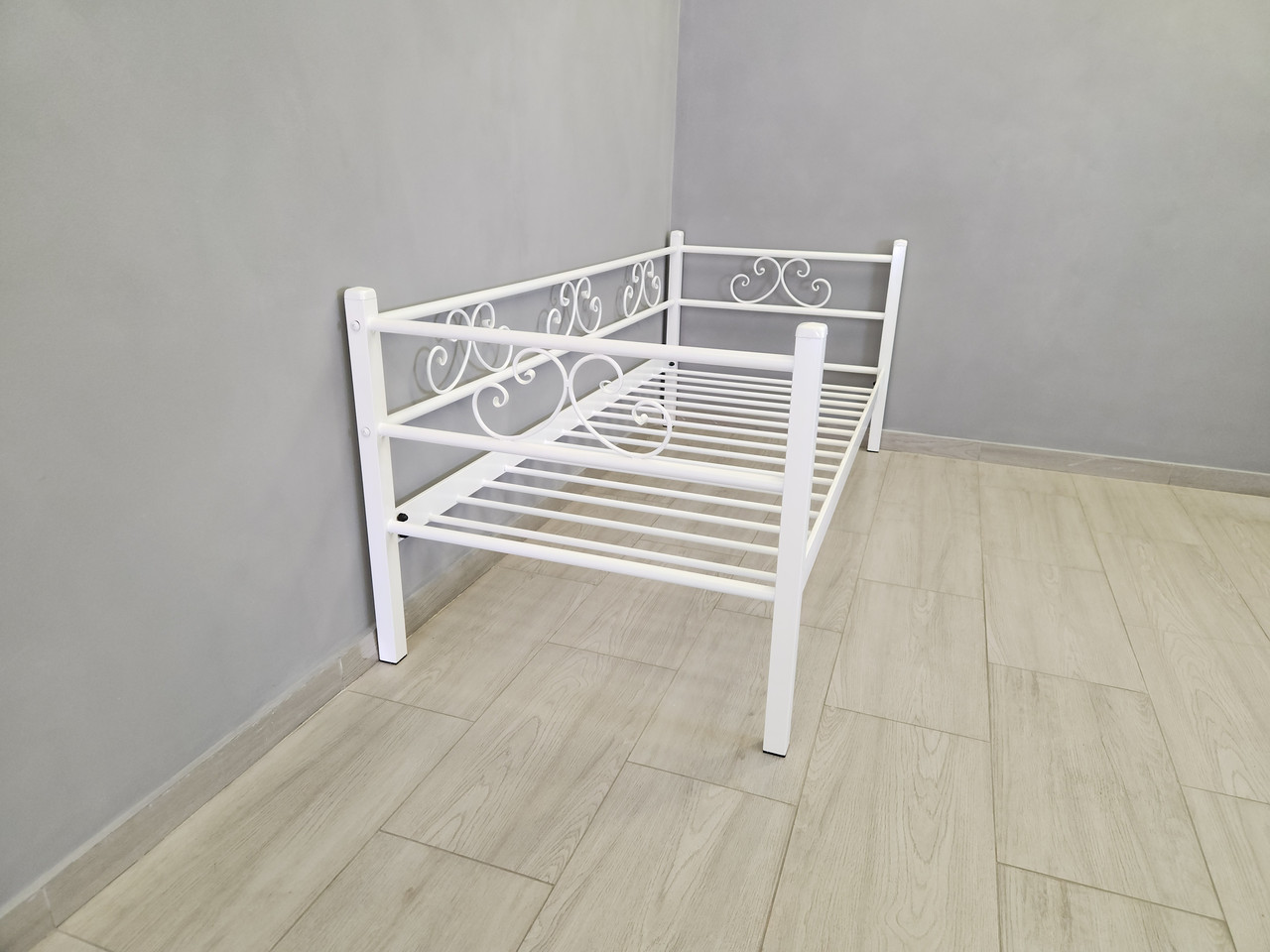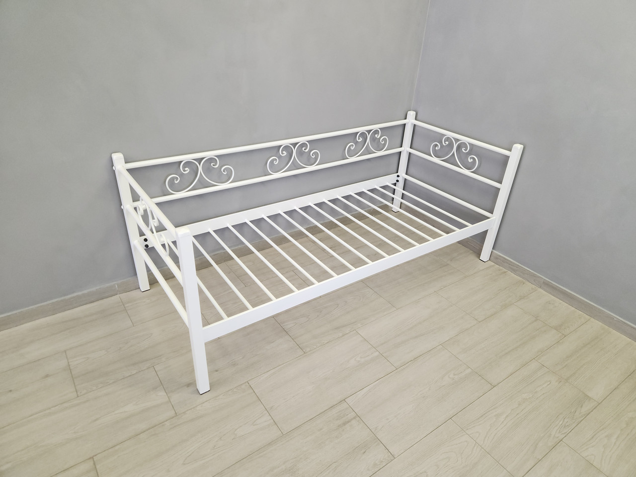 Односпальне металеве диван-ліжко в стилі Прованс. Конструкція дуже легко збирається та займає небагато місця в кімнаті. Чудовий варіант для вітальні у вишуканому інтер'єрі. Міцна основа з металевого профілю стійка до навантажень та подряпин. Крок металевих трубок - 8 см. Опції: термін виготовлення до 10 робочих днів Посилені металеві трубки (крок 4 см): +723 грн ДВП підкладка: +448 грн Букові ламелі: +723 грн Посилені букові ламелі (крок 2,5 см): +1029 грн Колір покриття/розміри ліжка 1900, 2000 х 800, 900 білий, бежевий, коричневий, чорний оксамит, чорний (глянець) 7247 чорне/срібло,чорне/золото, чорна мідь, біле/срібло, білий/оксамит 7531 бордо, жовтий, зелений, синій, бузковий, сірий, золото 7935
