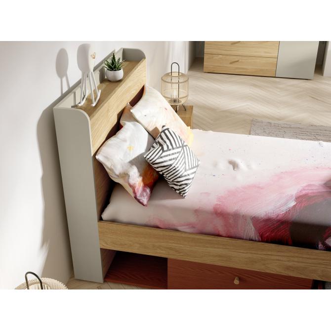 Простий дизайн і приємні для ока кольори також привертають увагу, завдяки чому меблі є оригінальною і елегантною прикрасою кімнати. Колір: сіро-бежевий/дуб масляний/кораловий. Колір: сіро-бежевий/дуб масляний/кораловий Додаткова інформація: у вартість включений ламельний вклад, БЕЗ матраца. Розмір матраца 90*200 см, рекомендована висота 15 см.