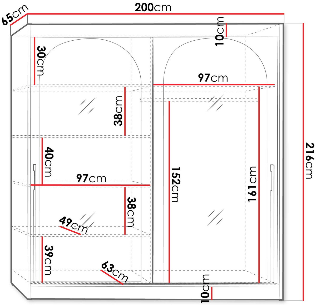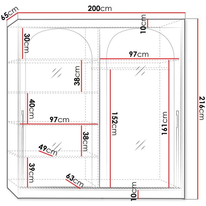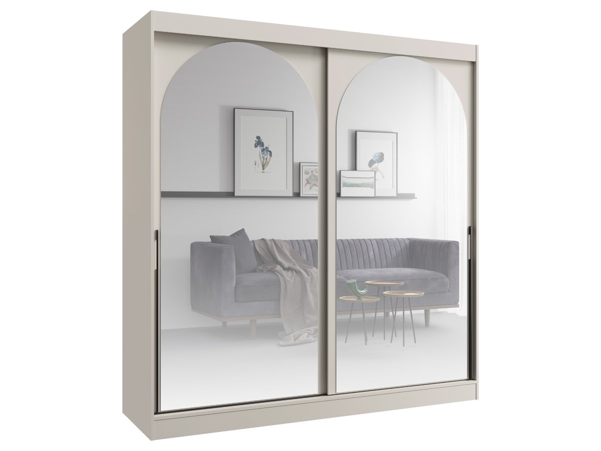 Колір: кашемір/кашемір (чорна ручка). Додаткова інформація: ЛДСП 16 мм, кромка ABS, пластикова ручка, розсувна алюмінієва система LAGUNA з регулюванням, напрямна рейка монтується до нижньої частини шафи. Розміри коробок: 4,8*69*221 см + 9,6*53*118,5 см 4,8*69*203 см