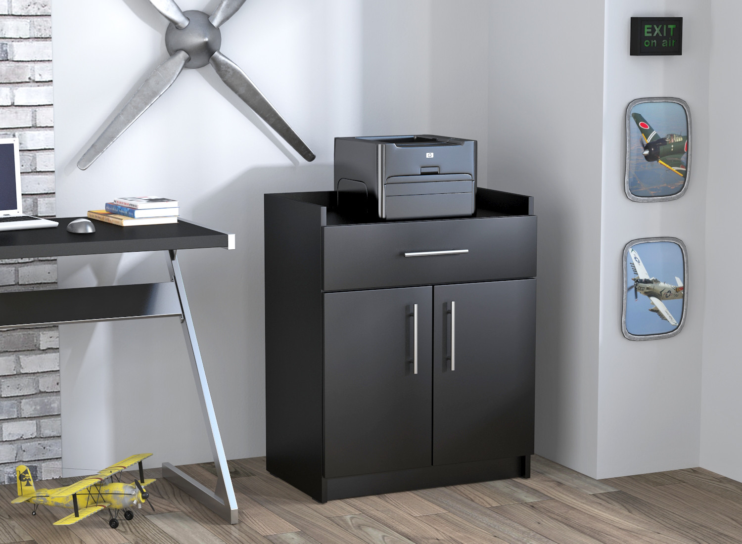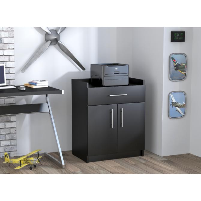 В тумбі має огорожену верхню поверхню для принтера або іншого обладнання, висувний ящик на всю ширину тумби та відділення, закрите двома дверцятами. Всередині відділення присутня поличка, що дозволяє розділити внутрішній простір тумби на дві зони.