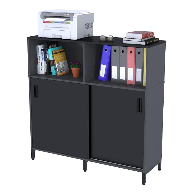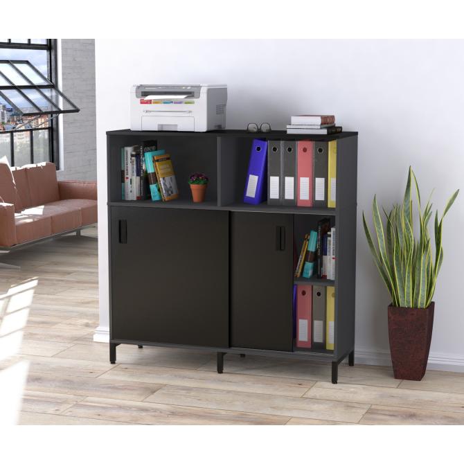 Ця тумба виглядає ще солідніше, завдяки більшому розміру. Крім збільшення місткості, тумба з відкритими елементами виглядає менш громіздкою. Одна така тумба містить всю необхідну бухгалтерію невеликого офісу. Це сучасний багатофункціональний та водночас стильний предмет інтер'єру.