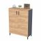 Каркас тумби виконаний з ламінованого ДСП кольору Антрацит. Двері та верхня кришка виготовляється у п'яти кольорах: Венге Луїзіана, Дуб Палена, Горіх модена, Дуб Крафт Золотий та Білий. Металеві опори та ручки чорного кольору. Опори комплектуються регульованими ніжками, які дозволяють виставити тумбу на нерівній підлозі.