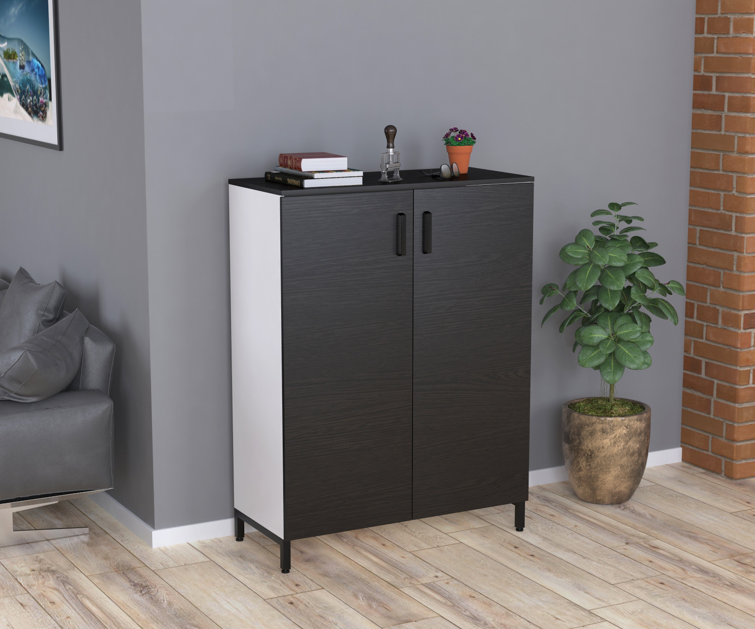 LT-900-1200 біла - це класична висока офісна тумба з двома дверима та трьома полицями всередині. Однак вона має деякі відмінні риси, які виділяють її серед аналогів. Це металеві опори, які надають зовні легкість і незвичайність, а також двоколірне забарвлення, що робить акцент на красивих фасадах і водночас відводить погляд від громіздкого каркасу.