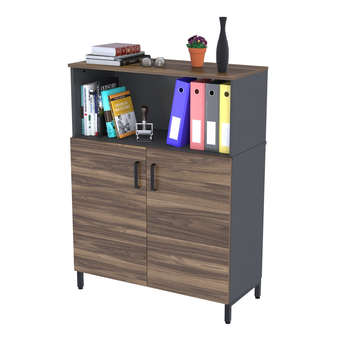У закриті відділення можна скласти офісну канцелярію, папір для принтера та інше. Металеві опори, на яких стоїть тумба, надають їй більш сучасного вигляду і дозволяє прибиратися на підлозі навіть під тумбою.