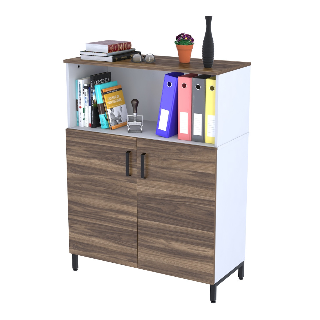 У закриті відділення можна скласти офісну канцелярію, папір для принтера та інше. Металеві опори, на яких стоїть тумба, надають їй більш сучасного вигляду і дозволяє прибиратися на підлозі навіть під тумбою.