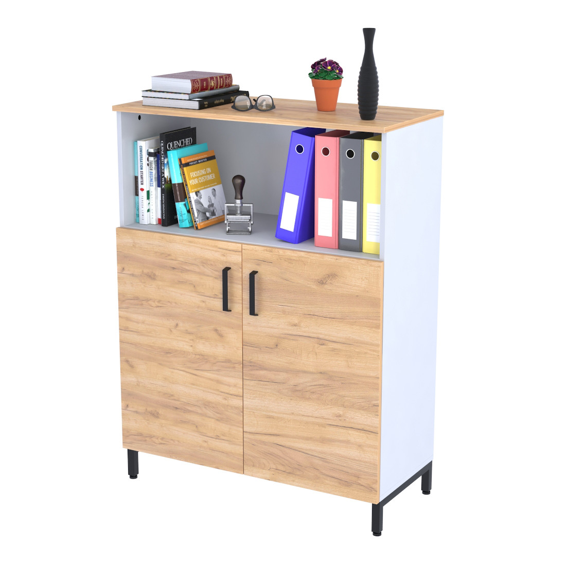 У закриті відділення можна скласти офісну канцелярію, папір для принтера та інше. Металеві опори, на яких стоїть тумба, надають їй більш сучасного вигляду і дозволяє прибиратися на підлозі навіть під тумбою.