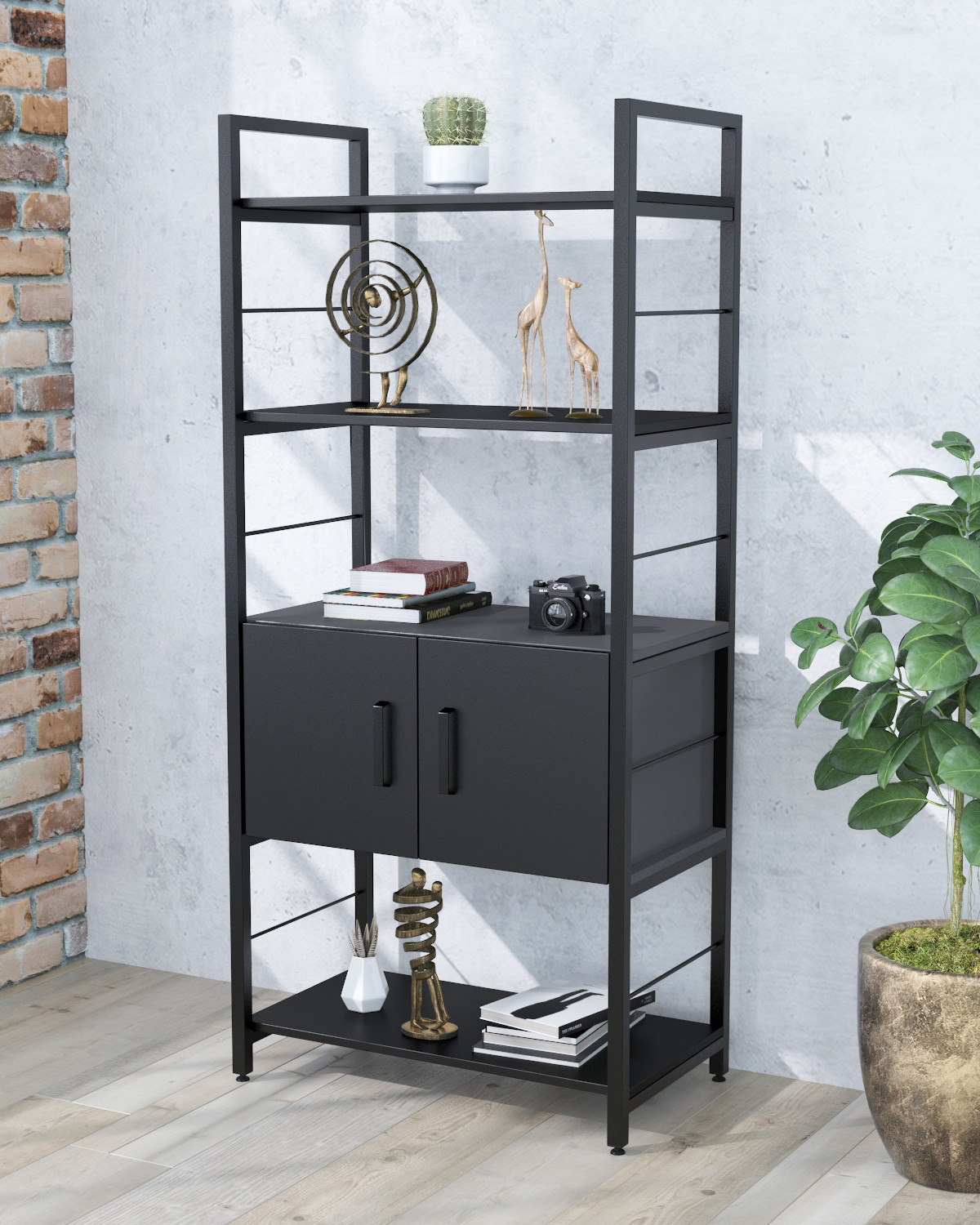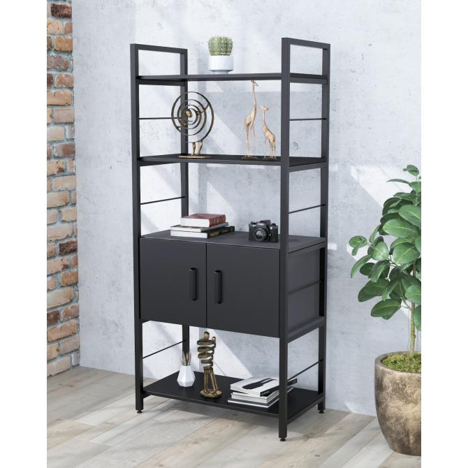 Стелаж L-155 з дверцятами від компанії Loft Design - це гарний стелаж середньої висоти з відкритими полицями і двома шухлядами.