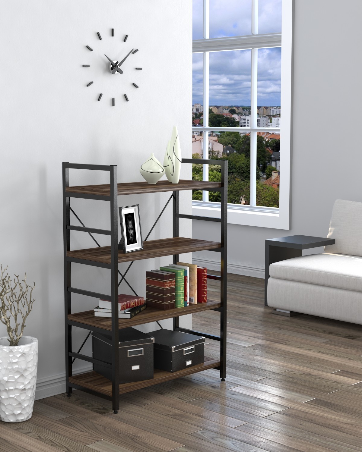 Стелаж має свіжий вигляд. Він не завантажує простір і залишає маневри для світла. Виглядає він сучасно і стильно. При цьому надійний і функціональний.