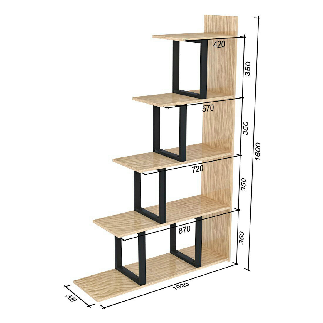 Каркас стелажа виготовлений з хромованого металу, пофарбованого в чорний колір. Стійкий до стирання, механічних пошкоджень і окислення. Ніжки регулюються, тому стелаж легко встановити на нерівній підлозі. Полиці виконані з якісного ЛДСП товщиною 18 мм.