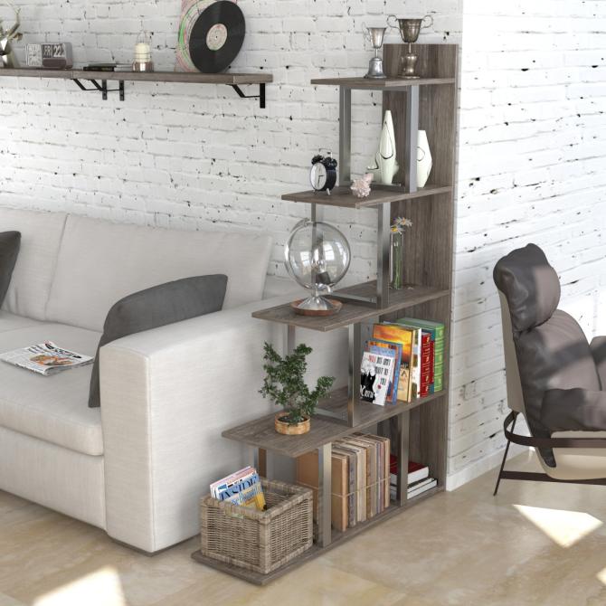 Завдяки своїй оригінальній формі, стелаж сподобається любителям нестандартних рішень. Його можна з однаковим успіхом використовувати в офісі або квартирі.