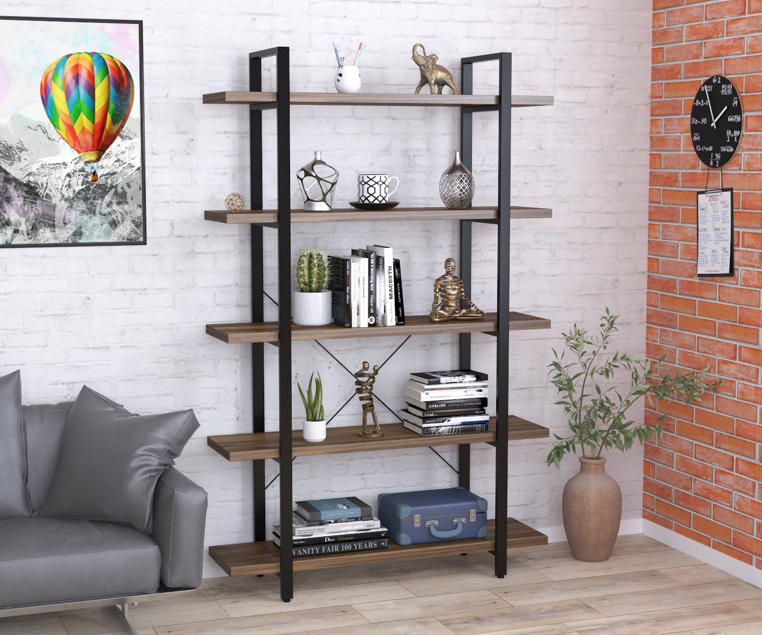Стелаж з металевим каркасом Сінгл-5-120 відмінно підійде для офісів, студій або просто просторих кімнат, наприклад віталень або спалень.