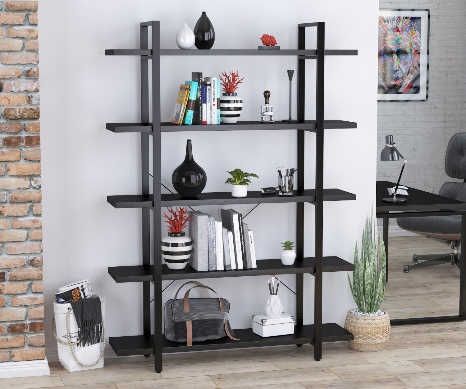 Стелаж з металевим каркасом Сінгл-5-135 відмінно підійде для офісів, студій або просто просторих кімнат, наприклад віталень або спалень.