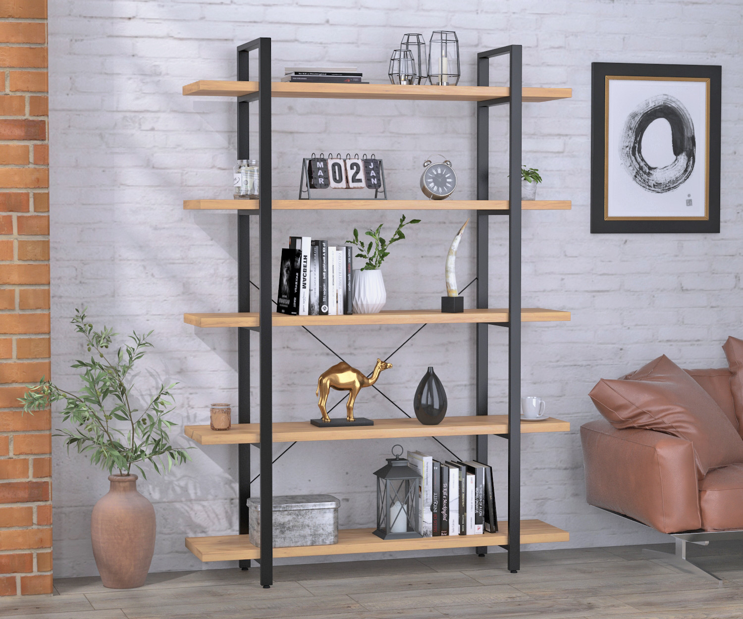Стелаж з металевим каркасом Сінгл-5-135 відмінно підійде для офісів, студій або просто просторих кімнат, наприклад віталень або спалень.