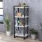 Металевий каркас проглядається зі всіх сторін, акцентуючи увагу на предметах, лежачих на полицях. Акуратне виконання деталей стелажу і геометрическая гармонія конструкції підкреслює тонкий смак власника приміщення.