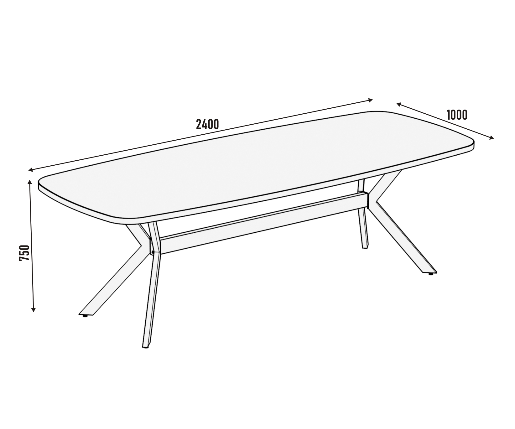 Завдяки заокругленим краям стіл виглядає елегантно та безпечно, створює більш м’яку й сприятливу атмосферу для спілкування. Конструкція столу включає міцні металеві опори, з’єднані нижньою перегородкою з ДСП, масивну стільницю та можливість встановлення вбудованих розеток.