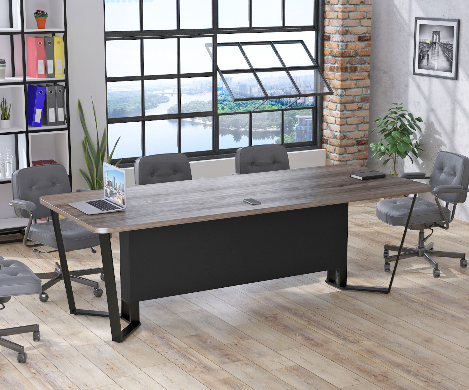 Він виконаний у стилі лофт і модерн, який популярний і актуальний протягом довгого часу. Такий сучасний стіл стане центральною фігурою будь-якого конференц-залу.