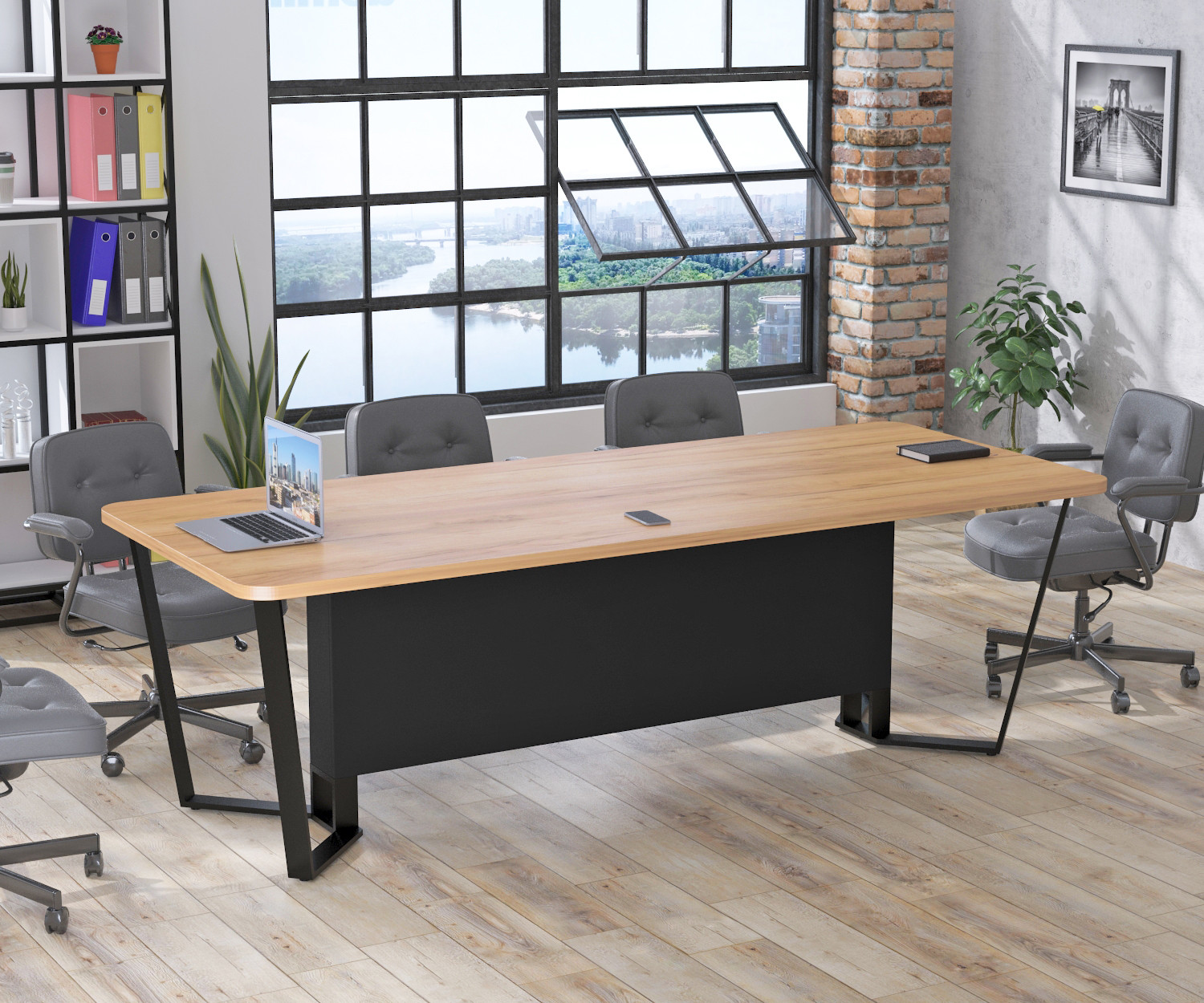 Він виконаний у стилі лофт і модерн, який популярний і актуальний протягом довгого часу. Такий сучасний стіл стане центральною фігурою будь-якого конференц-залу.