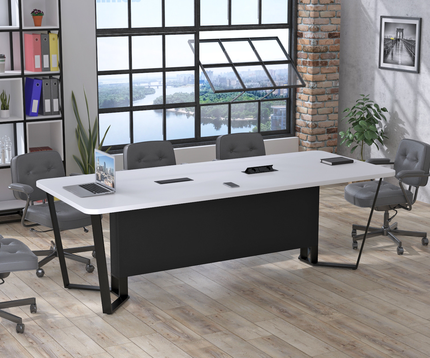 Він виконаний у стилі лофт і модерн, який популярний і актуальний протягом довгого часу. Такий сучасний стіл стане центральною фігурою будь-якого конференц-залу.