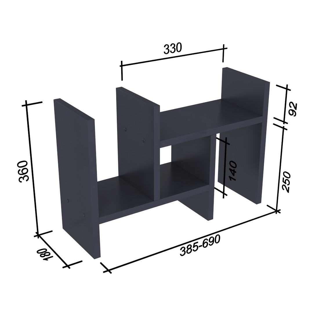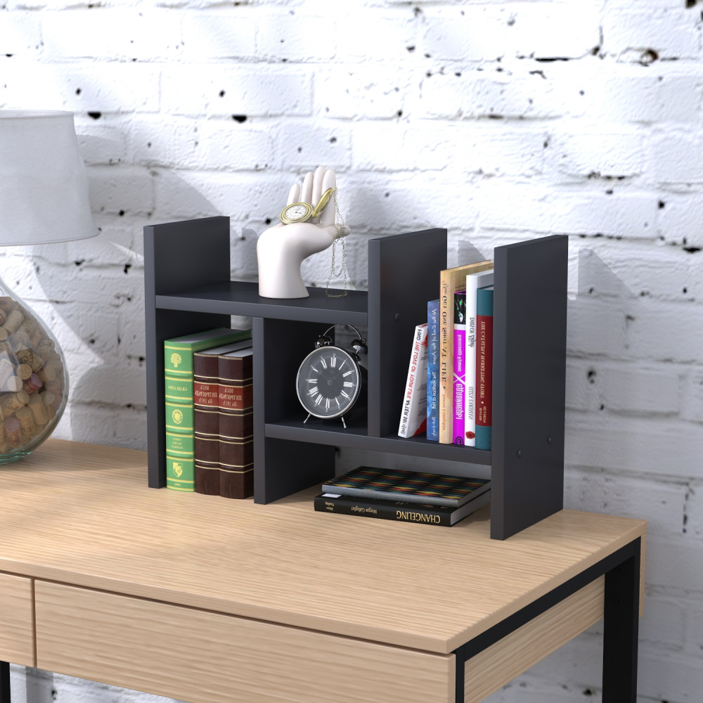 Ви зможете скласти на неї усi блокноти і зошити наприкінці робочого дня. У надставки є відділення для великих журналів або книг, а також невисокі широкі ніші для зошитів та інших предметів.